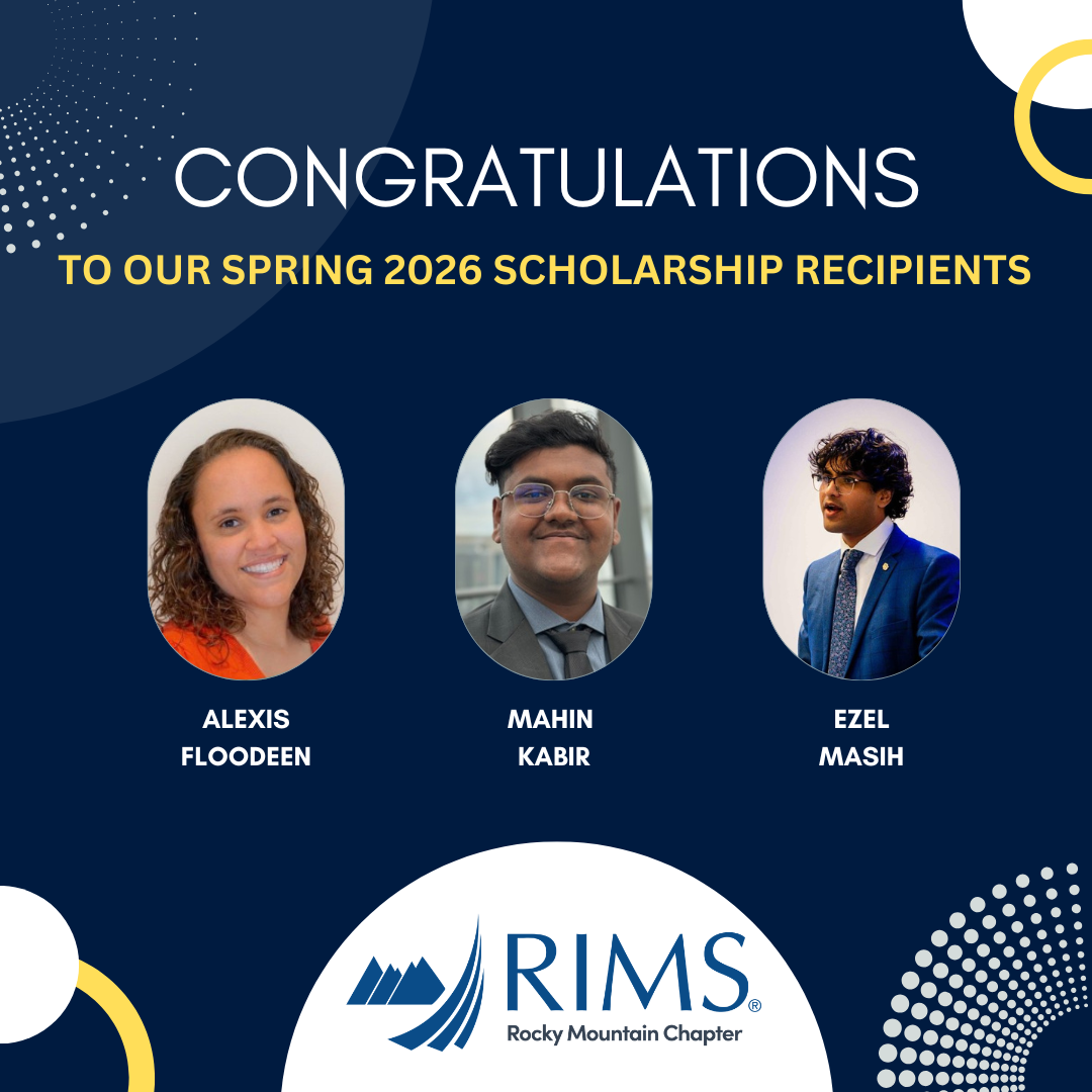 Over the last decade, our generous sponsors’ support has enabled us to make minimum annual donations of $14,000 to each of the Risk Management & Insurance Programs at University of Colorado Denver Business School and New Mexico State University for scholarships and attending industry conferences. Last October, the Board approved increasing our minimum annual donation amount to $20,000, a 43% increase! Thank you for making this possible through your sponsorship and participation in the Rocky Mountain RIMS chapter. Your continued support empowers and enhances educational opportunities for the next generation of risk professionals! Together, we're making a difference and creating a lasting impact for the future!