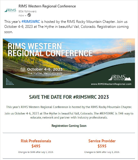 RIMS Western Regional Conference 2023 Save the Date